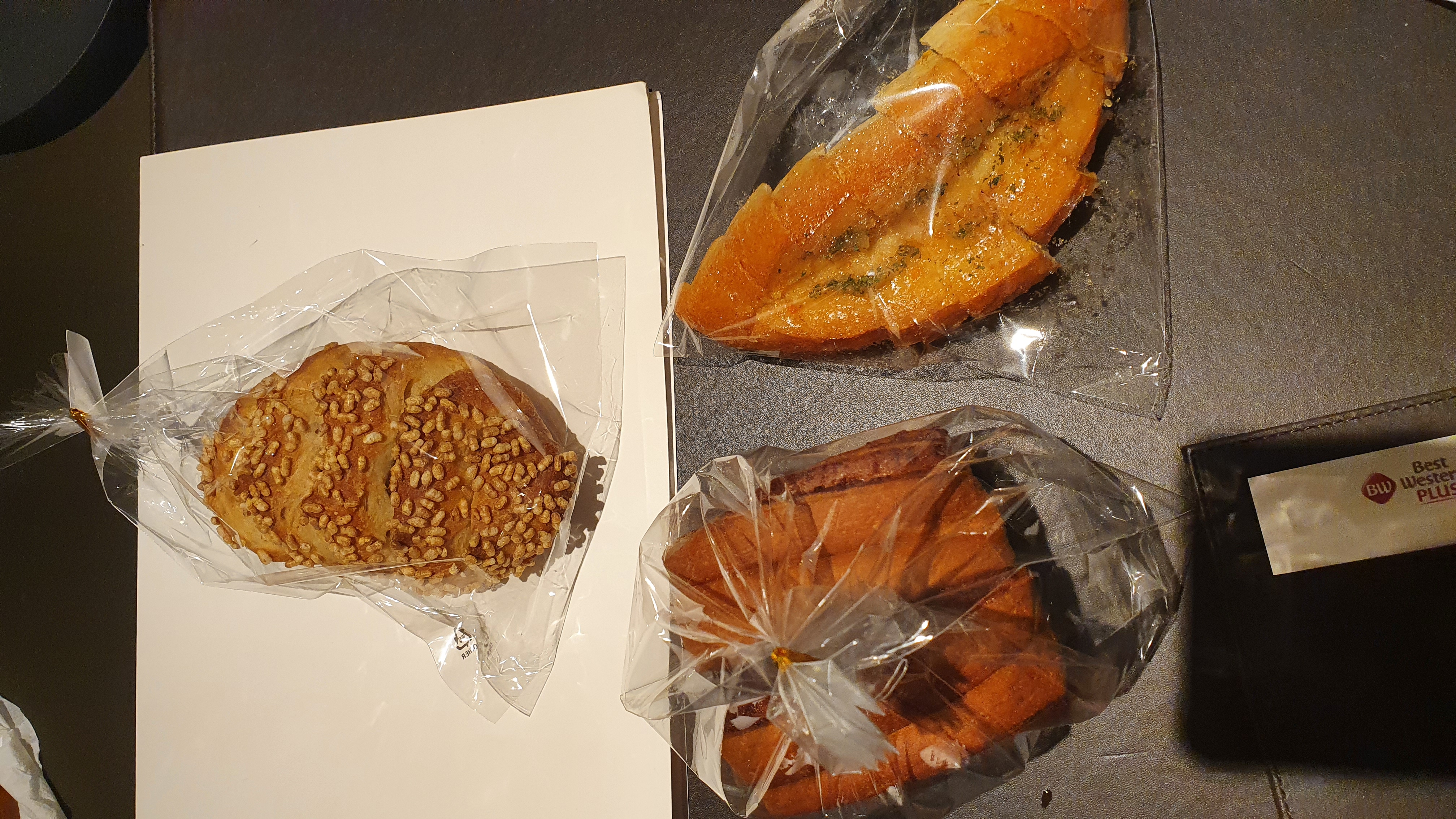 아래 사진은 단호박 깜빠뉴, 마늘빵, 시나몬 롤빵
