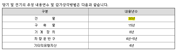 변전소, 발전소, 폐수 처리, 하수도, 축사, 기타 진동이 심하거나 부식성 물질에 노출된 것 등등 위의 법에서 건축물 내용연수 예외로 명시된 상황에 해당하는 기업의 세무조정담당자라면 필히 알면 좋은 부분이 아닌가 싶습니다.
