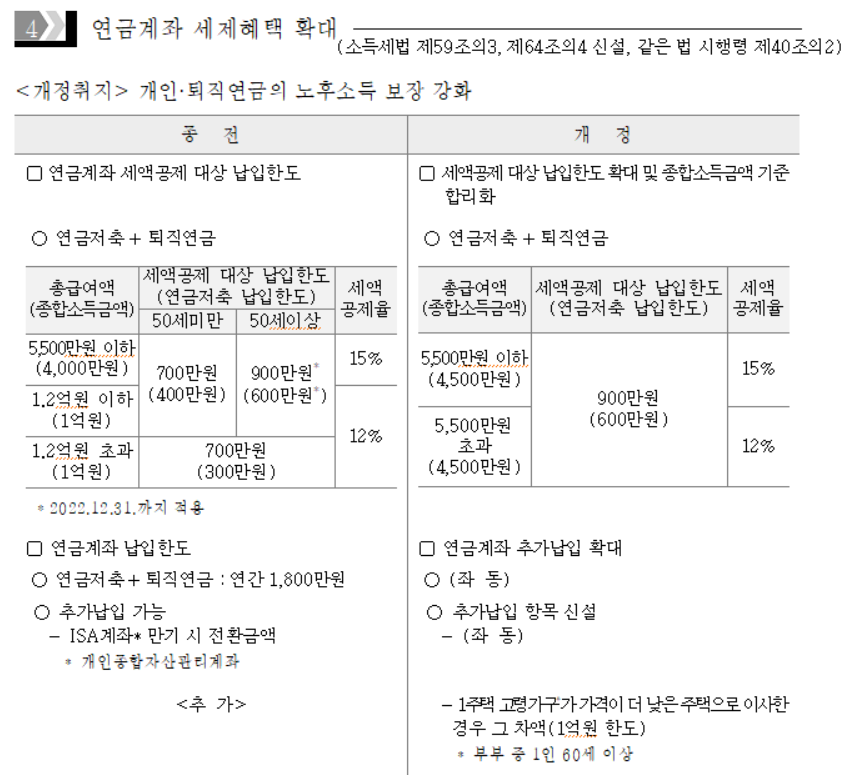 3) 연금계좌 50세 미만 납입한도 확대로 인한 세액공제 확대
