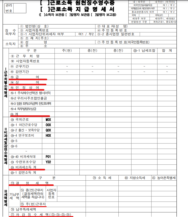 ◇ 연말정산 원천징수영수증 보는 법(인정상여)